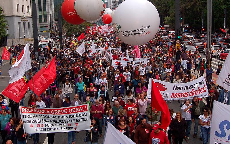 “Paralisamos várias categorias profissionais. Da Educação, os Metalúrgicos, os Químicos, os Eletricitários, vários. É uma demonstração para os golpistas de que não vamos aceitar nenhum retrocesso, nenhuma retirada de direitos trabalhistas. É só uma etapa antes de uma greve geral que está em construção. Uma parte da sociedade brasileira ainda não conseguiu entender o que está por trás desse golpe, dessa ação organizada pela Fiesp e pelos setores econômicos que querem acabar com os direitos sociais conquistados”, disse Douglas Izzo, presidente da CUT-SP, ao DCM.