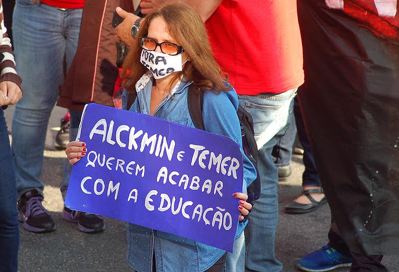 Como educação parece ser uma das disciplinas mais visadas pelo governo golpista, lá estavam também os estudantes. Sucateamento do ensino público, embromação na CPI da merenda, reorganização e privatização veladas, aberrações como o Escola Sem Partido. Motivos não faltam para os jovens estarem descontentes e preocupados com o futuro.