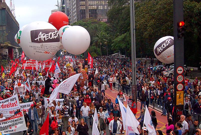 Além das centrais sindicais, diversos movimentos sociais, a Frente Popular, a Frente Povo sem Medo, bancários, professores, estudantes. A categoria dos professores, que há muito tempo sofre nas mãos de Geraldo Alckmin e já vêm se mobilizando há algum tempo para uma greve, estava em peso.