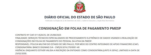O fato de o banco Digimais estar operando no vermelho e com risco de desenquadramento pelo Banco Central não impediu que o governo de São Paulo fornecesse autorização à instituição para oferecer e operar crédito consignado e serviço de cartão de crédito e débito a todos os policiais militares da ativa do Estado de São Paulo, conforme publicado no Diário Oficial do Estado, no dia 19 de setembro de 2025. O governador Tarcísio de Freitas é filiado ao partido Republicanos, controlado pela Igreja Universal e cujo presidente é Marcos Pereira, bispo da denominação.