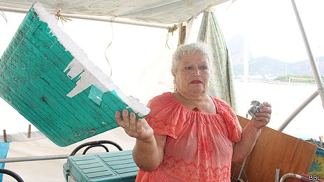 Viúva, ela mora com a filha em São Gonçalo, do outro lado da Baía de Guanabara. Conta que leva três horas para chegar de ônibus à orla às seis da manhã, quando o movimento dos cariocas que saem para fazer exercício começa a se intensificar.