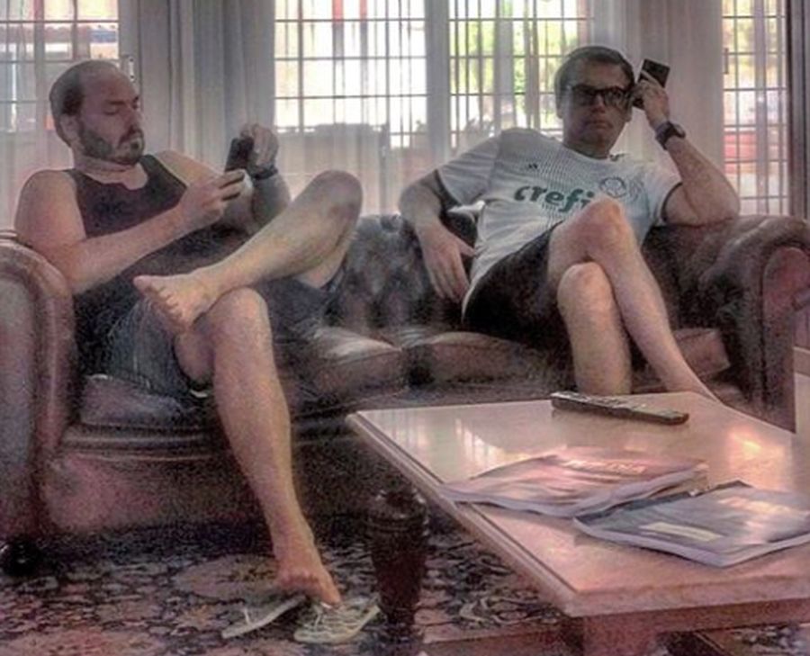 Ali, pelo menos, ele faz sucesso e por isso o sujeito vive no celular com o Carluxo.