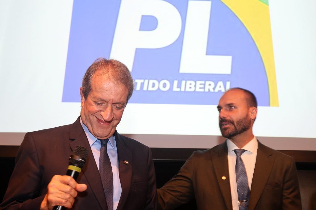 Valdemar Costa Neto, presidente do PL, e o deputado Eduardo Bolsonaro. Foto: Beto Barata/PL