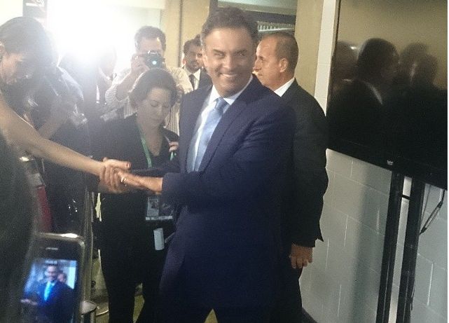 Aécio deu risada. “Essa possibilidade pequena a que você se refere não é bem o que andamos ouvindo por ai”, disse, sendo interrompido pela funcionária da Globo que disse que ele tinha apenas um minuto para terminar a resposta.