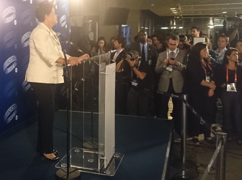 Respondendo a um jornalista argentino, Dilma disse que o país latino-americano é um parceiro fundamental do Mercosul e que as relações internacionais devem desenvolver uma relação definida por ela como “amiga”. “Devemos também promover a Unasul (União de Nações Sul-Americanas ) e a Celac (Comunidade dos Estados Latinoamericanos e Caribenhos)”, completou.