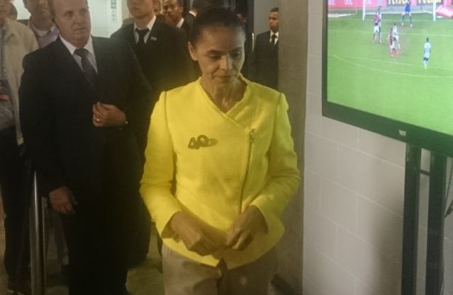 Marina Silva repetiu quatro vezes a palavra “vitória” num discurso muito bem treinado, não dando espaço para questionamentos. Mesmo assim, sua assessoria de imprensa estava tensa e analisando toda a fala.