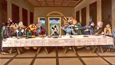Os personagens da Disney tiveram uma releitura do quadro de DaVinci. Nela, Mickey Mouse foi retratado na mesma posição de Jesus Cristo em uma peça feita pelo artista plástico norte-americano Ron English.