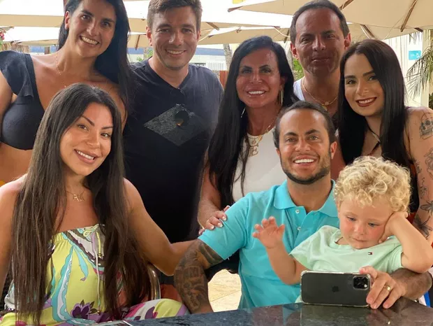 Gretchen com marido, filhos, cunhada e neto (Foto: Reprodução/Instagram)