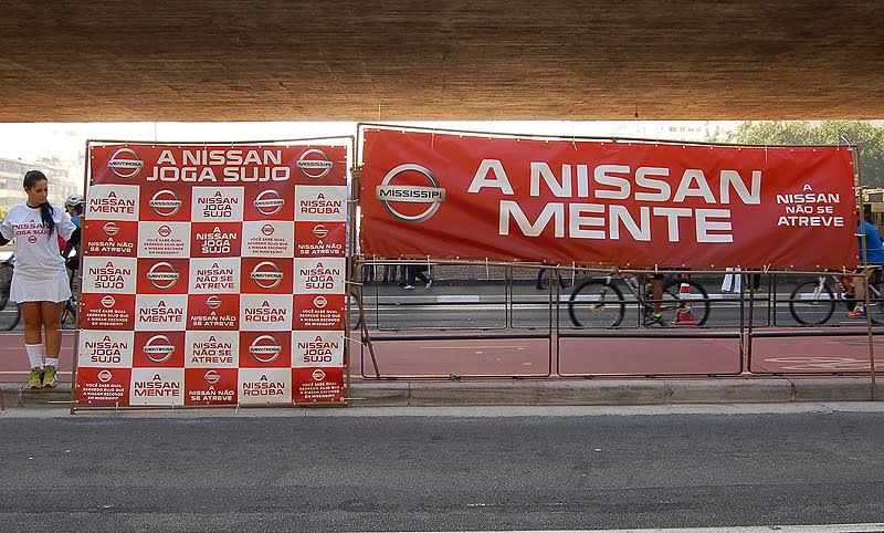 Sobrou também para um dos patrocinadores oficiais. Em frente ao MASP, faixas e cartazes cornetavam a gigante Nissan.