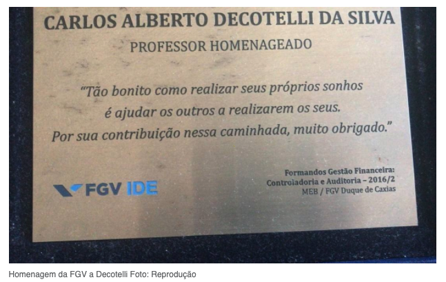 Placa de homenagem da FGV a Decotelli
