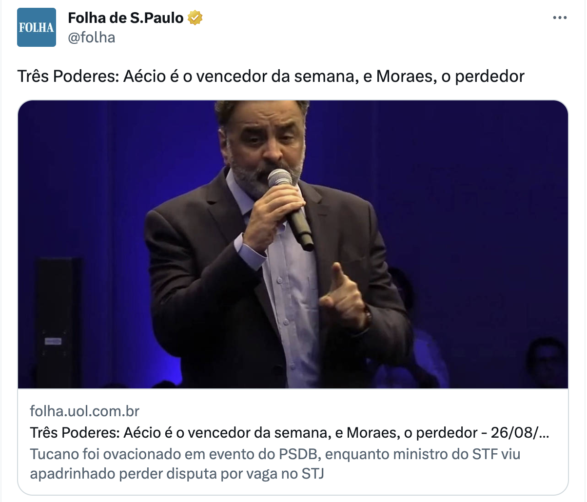 Na Folha de hoje, ele é o “vencedor da semana”, ao passo que o “perdedor” é Alexandre de Moraes.