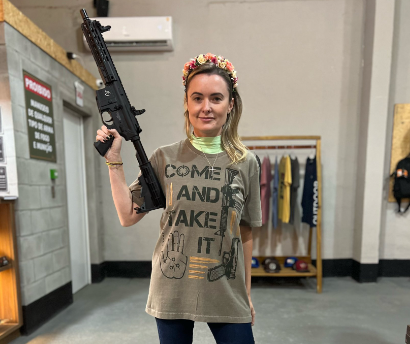 Na publicação, compartilhada na última sexta-feira (17), a deputada usa uma camiseta com a frase “COME AND TAKE IT! [venha e tome]”. Na vestimenta é possível ver a mão do presidente perfurada por três tiros.