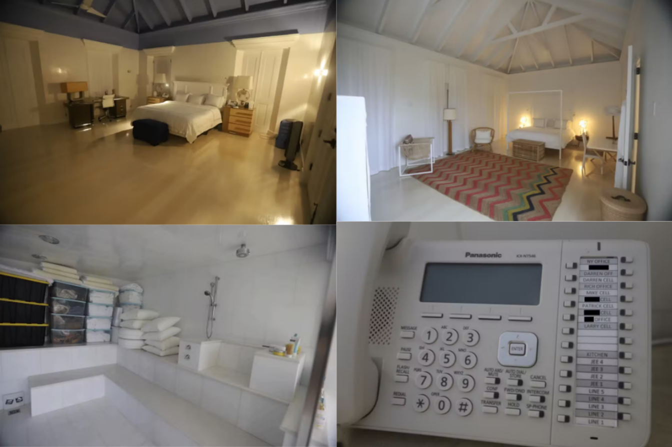 Epstein comprou a ilha em 1998 e, segundo os investigadores, parte dos crimes sexuais ocorria no local. As imagens mostram ambientes luxuosos e cômodos pouco usuais, como uma sala com cadeira de dentista decorada com máscaras.