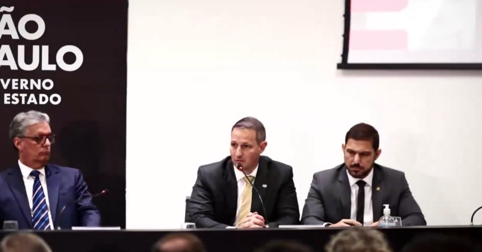 Guilherme Derrite durante coletiva no Palácio dos Bandeirantes – Foto: Reprodução