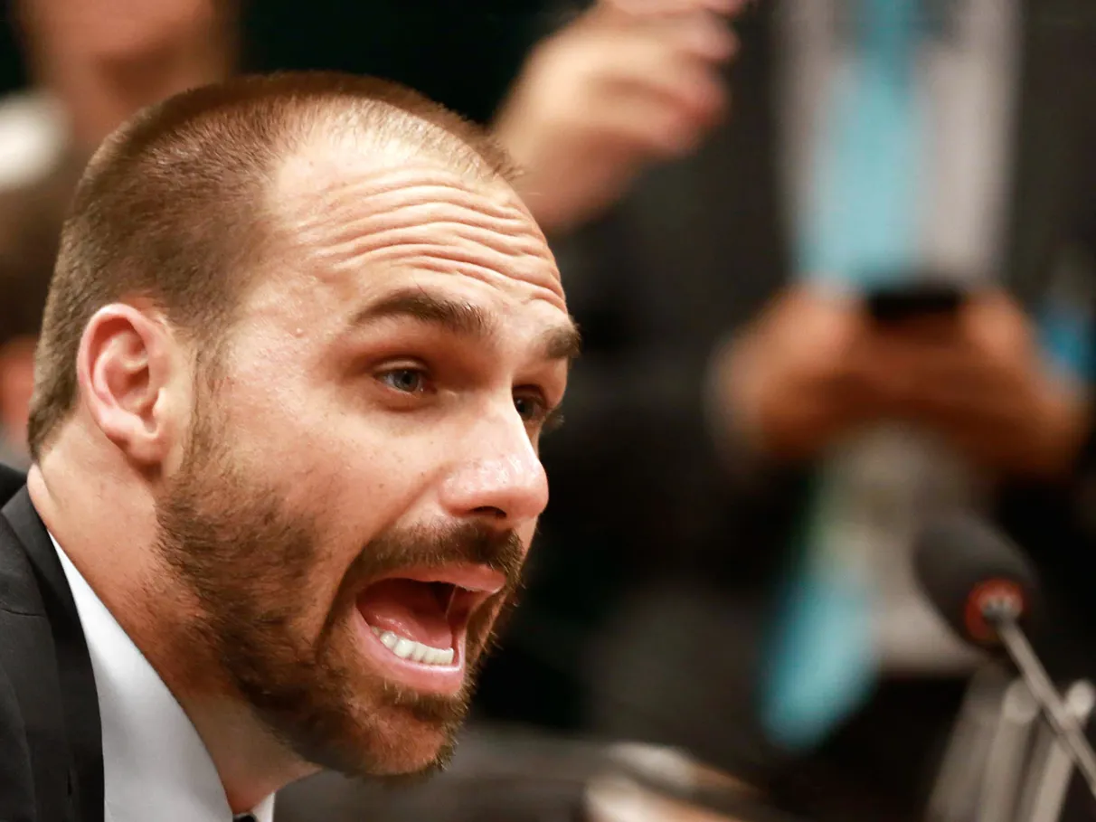 Eduardo Bolsonaro vive nos Estados Unidos desde fevereiro deste ano. Lá, buscou apoio junto à Casa Branca para que fosse aplicada a Lei Magnitsky contra Moraes, além de pedir a cassação de vistos de ministros do STF.