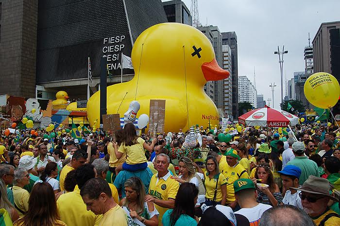 É preocupante que uma quantidade de gente tão grande como aquela termine o dia “fatídico” sem dar respostas mais esclarecedoras. Gritavam em uníssono que estavam lá “de graça”, que não tinham ido em troca de “pão com mortadela” mas não sabiam dizer quais as empresas que financiam os grupos como o MBL e o Vem pra Rua, nem quem estava bancando aquelas centenas de milhares de patinhos infláveis que eram distribuídos em frente a sede da FIESP.