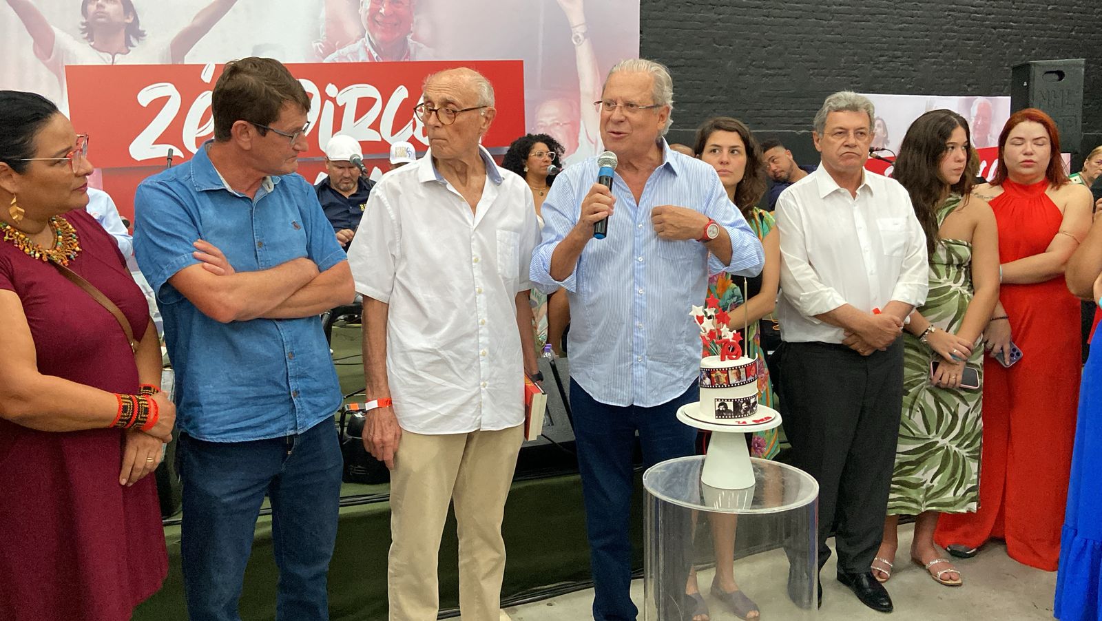 O ex-ministro José Dirceu (PT) comemorou seus 79 anos em um evento que marca seu retorno à cena política. A celebração ocorreu neste sábado, no Galpão Elza Soares, espaço ligado ao MST, em São Paulo. A reunião contou com a presença de Fernando Morais, Luiza Erundina, Eduardo Suplicy, Juliane Furno e Zeca Dirceu, além de outras lideranças petistas.