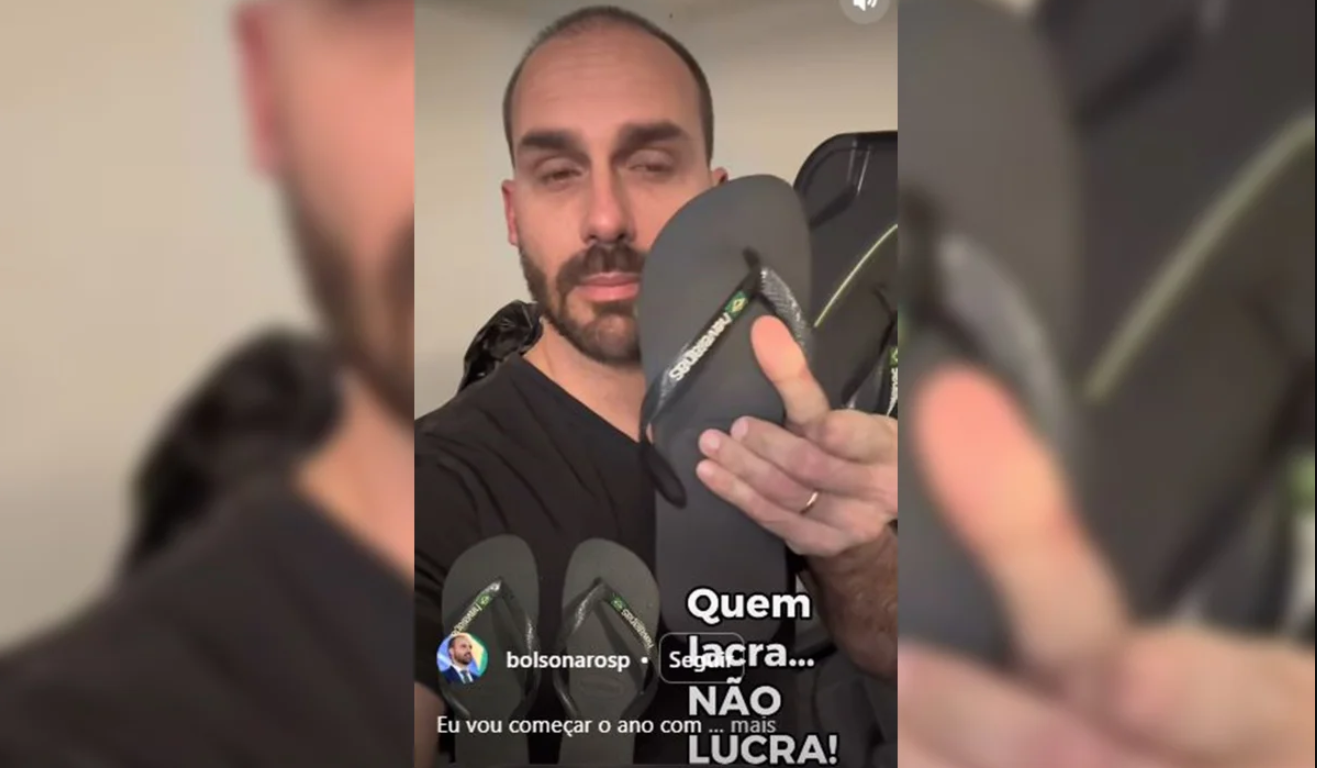 A reação de Eduardo à propaganda foi especialmente enfática. Após assistir ao comercial, o ex-parlamentar, que foi cassado por ultrapassar o limite de faltas na Câmara, apareceu em suas redes sociais jogando um par de chinelos da marca no lixo.