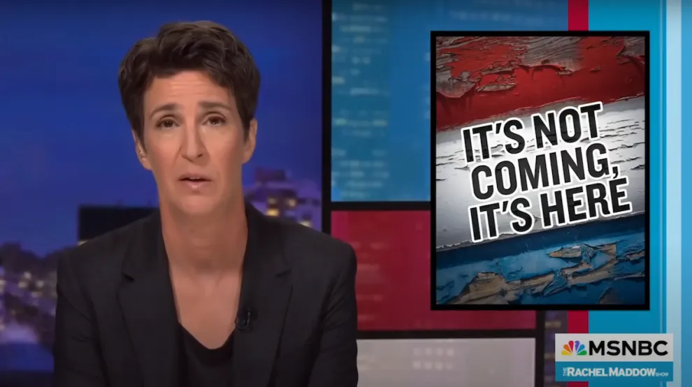 “Já cruzamos a linha. Estamos em um lugar em que não queríamos estar, mas chegamos lá. Aquilo sobre o que alertávamos nos últimos anos não está por vir, já chegou. Estamos vivendo isso”, disse Maddow.