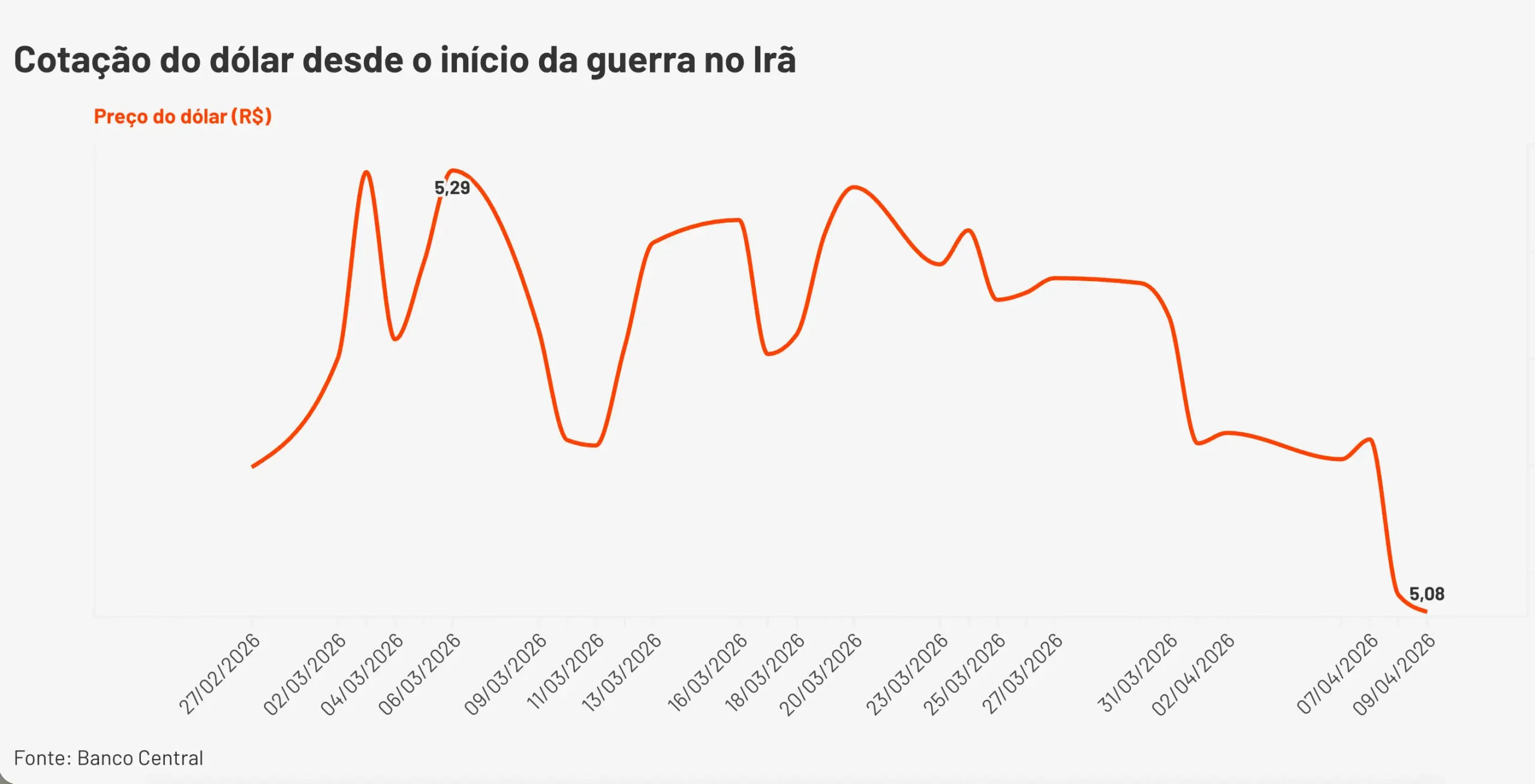 O cenário de alta no Ibovespa e queda no dólar ocorre em meio ao otimismo dos investidores, com atenção especial voltada para os desdobramentos do cessar-fogo entre os EUA e o Irã, estabelecido na terça-feira (7).