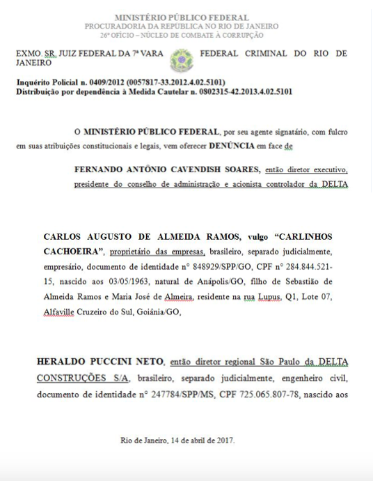 A denúncia, assinada pelo procurador Leandro Mitidieri Figueiredo, coloca Puccini como integrante da quadrilha de Fernando Cavendish e o bicheiro Carlinhos Cachoeira.