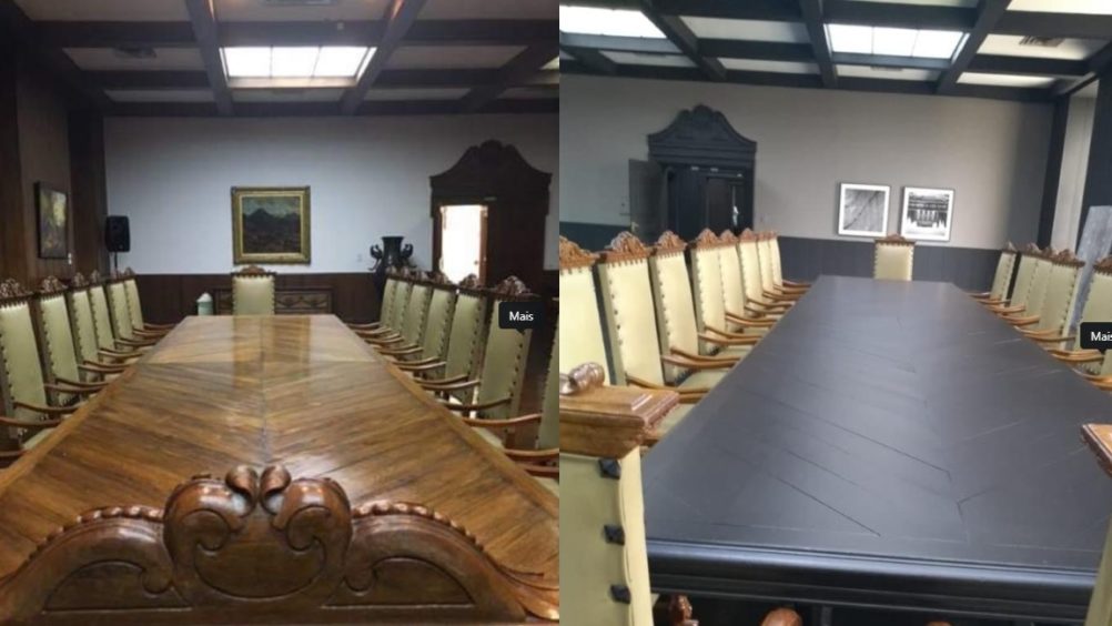 Mesa de madeira maciça do Palácio dos Bandeirantes foi pintada de preto