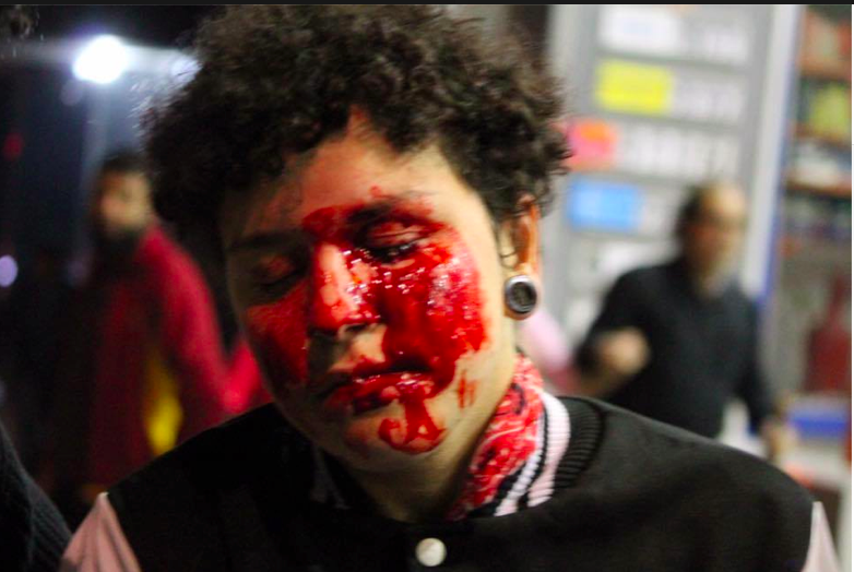 “O Rocam parou a moto do meu lado e disse ‘é você’ e começou a me bater, sem nenhum motivo”, afirmou Vinícius na saída da delegacia. Ele tomou 4 pontos na cabeça e teve sua câmera esmigalhada.