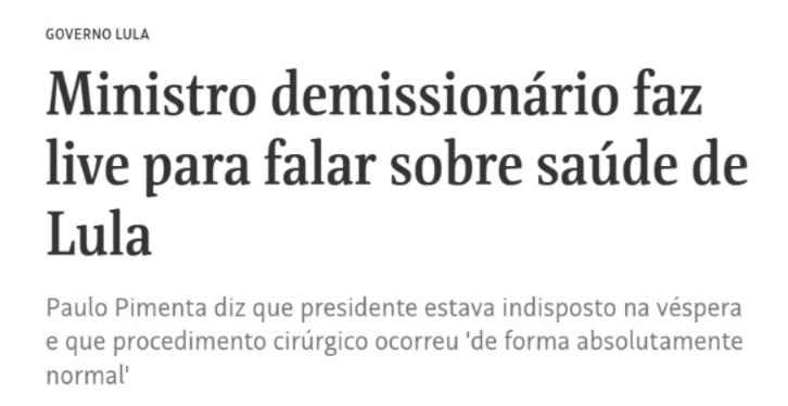 Reportagem da Folha de S.Paulo sobre a cirurgia do presidente Luiz Inácio Lula da Silva (PT)
