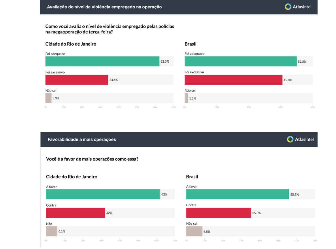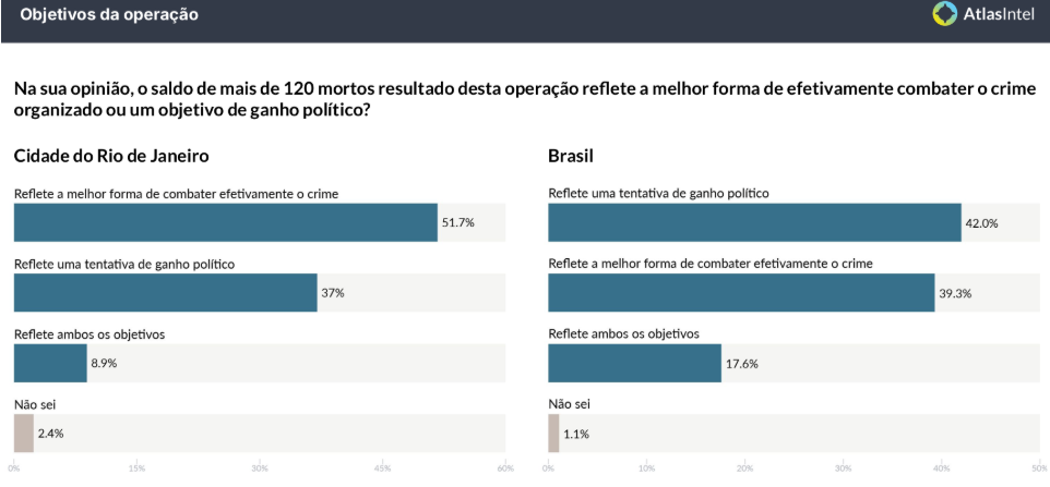 Por outro lado, os números não são tão ruins assim. Em nível nacional, 55,2% dos brasileiros apoiaram a operação, mas um percentual expressivo de 42,3% não o fizeram. Isso mostra que o país amadureceu e que uma fatia importante da população se preocupa com um combate ao crime que preserve a segurança dos próprios policiais e dos civis.