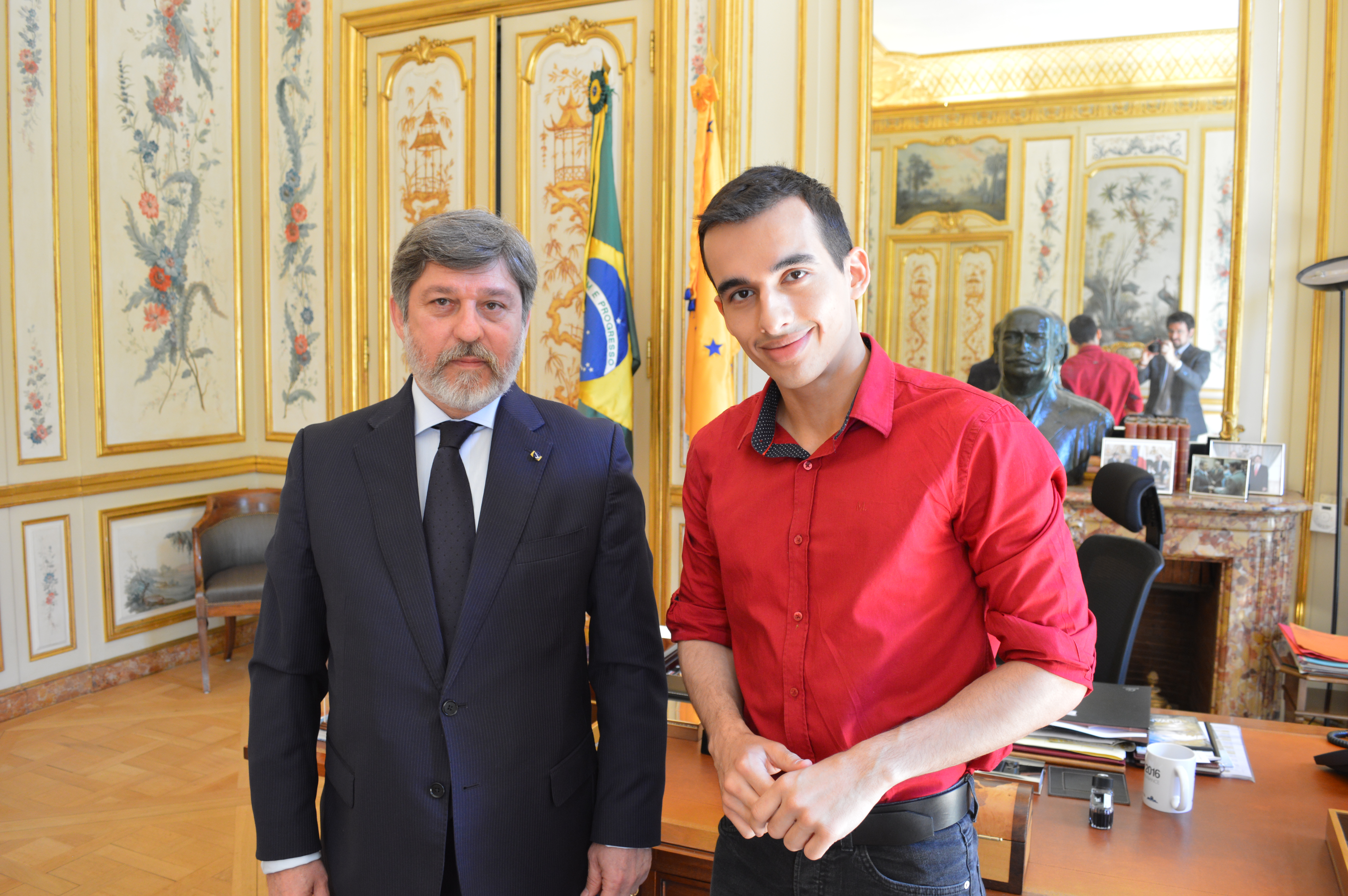 Eu queria que você tivesse perguntado mais sobre Brasil e França. Eu sou um diplomata com 42 anos de carreira. Eu tenho o papel de promover as relações do Brasil com a França. Existem questões muito importantes que são, na verdade, a essência da nossa relação, que nao sao necessariamente coisas que passem pelo governo. O Brasil tem uma profunda aceitação na França. A cultura brasileira, a música brasileira, a literatura brasileira, o cinema brasileiro. Há um interesse genuíno da França e dos franceses pelo Brasil. Um artista brasileira se sente muito mais consagrado às vezes de ter um momento em Paris do que em Nova Iorque. No nosso imaginário, Paris, a cultura da França é um espelho para o mundo, uma porta que se abre para o mundo. Nós temos um grande número de estudantes brasileiros, com bolsas do governo ou não, ou de instituições que vem aqui. Chegamos a ter 12 mil estudantes nos últimos anos, a grande maioria em pós-graduação. Tem aumentado o interesse dos estudantes brasileiros em fazer graduação e pós-graduação na França.
