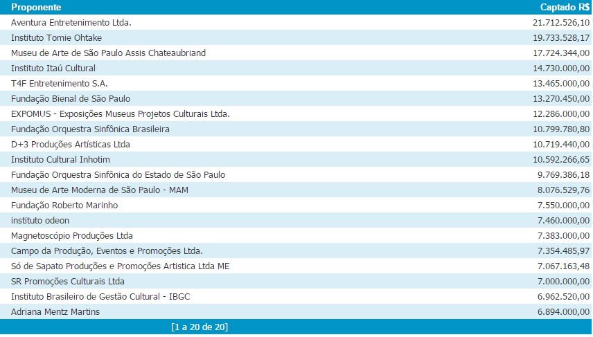 O nome que aparece em primeiro lugar, com mais de 21 milhões de reais capturados em 2015, não é o de José de Abreu, Letícia Sabatella ou Chico Buarque, mas da Aventura Entretenimento, que tem como sócio Luiz Calainho.