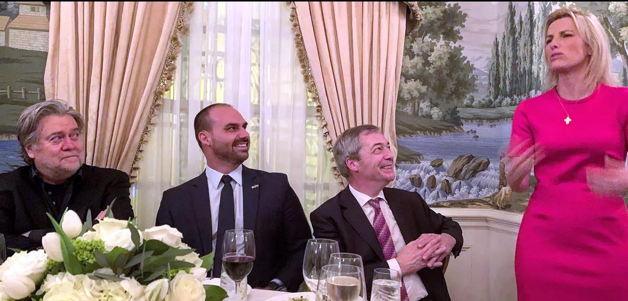 Dentro deste contexto de articulação global que Eduardo Bolsonaro foi introduzido. Em 2018, Bannon escolheu Eduardo para ser o rosto do “Movement” no Brasil, servindo como seu padrinho político e mentor.