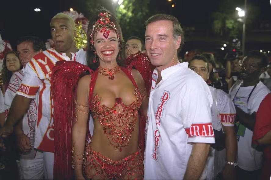 Luma de Oliveira e Eike Batista no carnaval de 2001. Foto: Marcelo Sayão