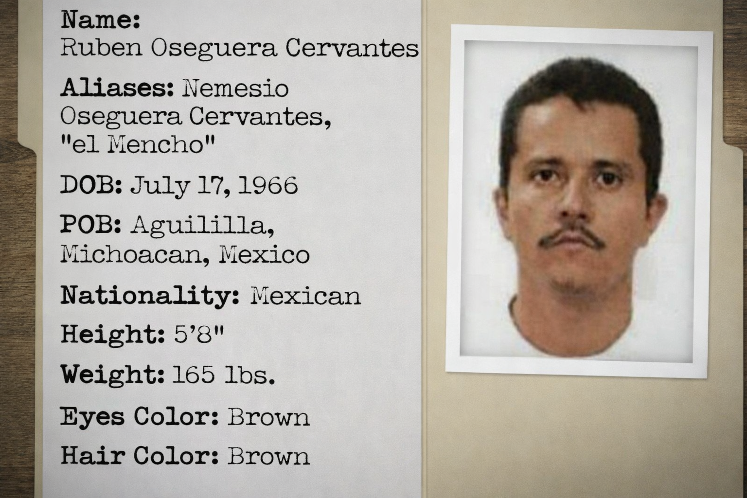 Apontado como o criminoso mais procurado do México, El Mencho liderava o Cartel Jalisco Nueva Generación (CJNG) e era considerado uma das principais figuras do crime organizado no país. Ele morreu após ser gravemente ferido na ação e não resistiu enquanto era transferido de avião para a Cidade do México.