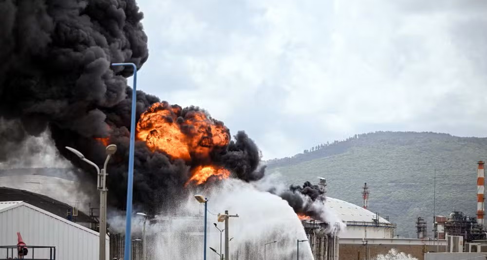 Incêndio de grandes proporções atinge refinaria em Haifa após ataque iraniano em 30 de março de 2026. Foto: Divulgação