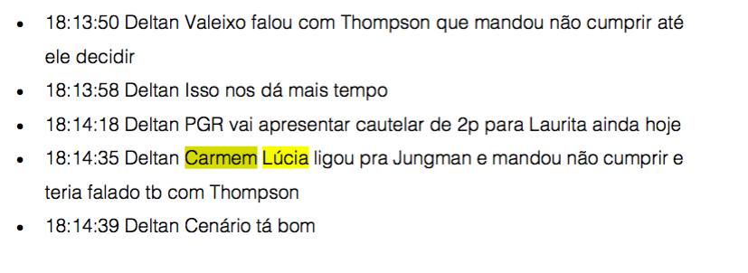 “Carmem Lúcia ligou pra Jungman e mandou não cumprir e teria falado tb com Thompson”, afirma Dallagnol.