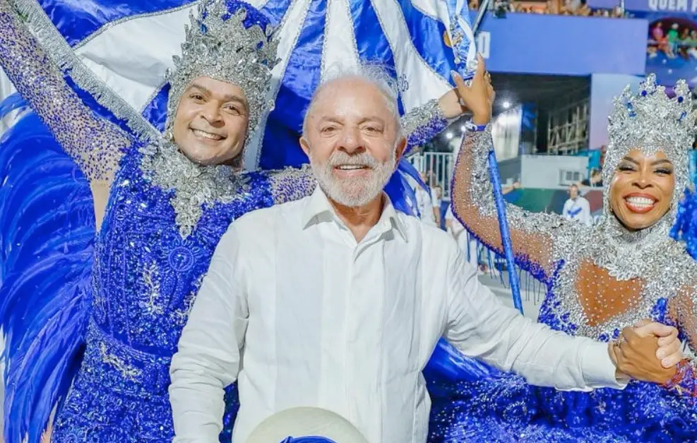 Lula acompanhou a apresentação do camarote da prefeitura do Rio ao lado do prefeito Eduardo Paes, ministros e aliados. Alegorias fizeram referências a episódios da política recente e a opositores do presidente.