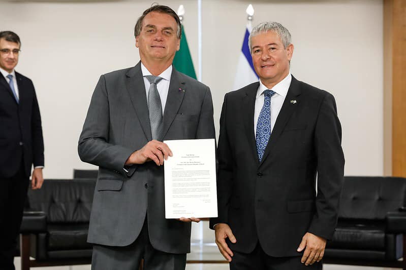 O embaixador de Israel, Daniel Zonshine, com o então presidente Bolsonaro