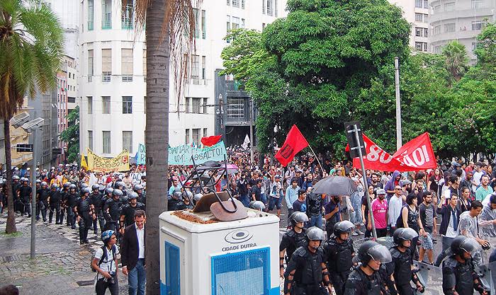 A estação Consolação do metrô estava fechada, num claro sinal de provocação. Fechada para que? Para que alguém se exaltasse? Depois de reaberta, houve uma tentativa de catracaço. Houve confronto com os seguranças do metrô, a PM entrou na estação, bombas lançadas, nove detenções ao todo. Os manifestantes que saíram da estação foram atacados com mais bombas e tiros.