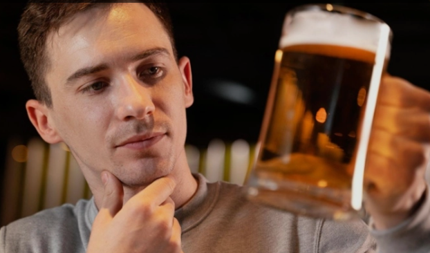 Homem observando uma caneca de cerveja. Foto: Reprodução/Freepik