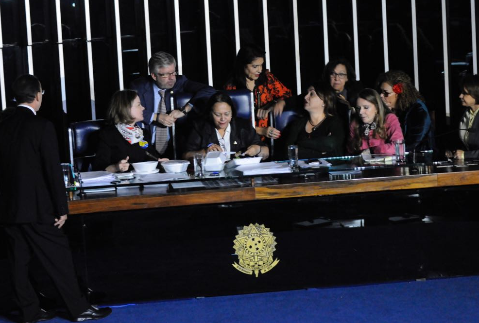 O plenário do Senado está com luzes apagadas e sem som. As bravas senadoras da oposição utilizaram a língua que a escória governista entende, a da força. Impedem que seja reiniciada a sessão que fará baixar um manto de trevas sobre os direitos sociais brasileiros.
