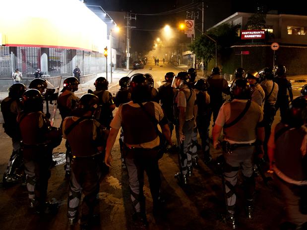 Assim como no protesto de sexta-feira (26) na Avenida Paulista, o ato desta segunda começou pacífico até que um grupo de mascarados passou a depredar lojas. A diferença em relação a sexta, quando a PM levou uma hora para reprimir os atos de vandalismo, é que desta vez a polícia acompanhou o protesto desde o início e agiu logo depois das primeiras depredações.