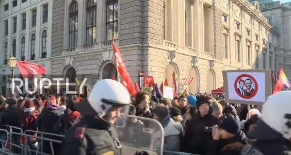 Milhares de pessoas protestaram neste sábado (13) em Viena, capital da Áustria, contra o novo governo do país, que inclui a sigla de extrema direita FPO(Partido da Liberdade).