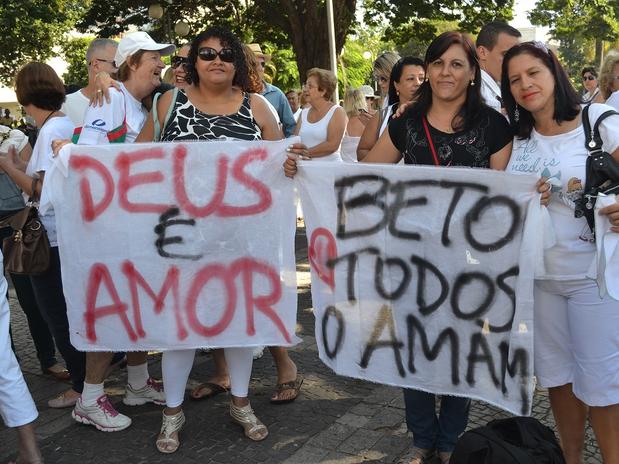 A manifestação foi convocada pelo grupo Eu Apoio Padre Beto, criado depois do ato de excomunhão por fiéis da paróquia São Benedito, uma das quais o padre rezava missas.