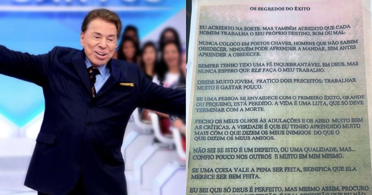 As filhas de Silvio Santos encontraram uma carta deixada pelo apresentador antes de sua morte, em agosto de 2024. Daniela Beyruti, atual presidente do SBT, compartilhou o documento intitulado “Os Segredos do Êxito” com funcionários da emissora durante uma reunião realizada na terça-feira (27), destacando os ensinamentos do pai sobre trabalho e sucesso.