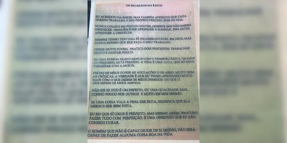 Na carta, o comunicador escreveu que “para aprender a mandar, um profissional precisa, antes, aprender a obedecer”. Ele também destacou: “Sempre tenho tido uma fé inquebrantável em Deus, mas nunca espero que Ele faça o meu trabalho”. O apresentador também reforçou a importância da economia: “Trabalhar muito e gastar pouco”.