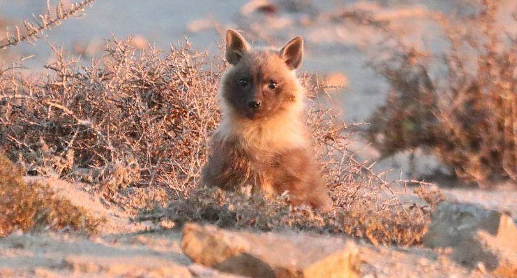 A hiena-marrom é a espécie mais rara do mundo, com uma população estimada entre quatro e dez mil indivíduos no sul da África. Discreta e silenciosa, ela vive em regiões áridas e costuma se abrigar em antigas construções humanas. Em Kolmanskop, essas ruínas oferecem refúgio contra o calor extremo e abrigam até filhotes.