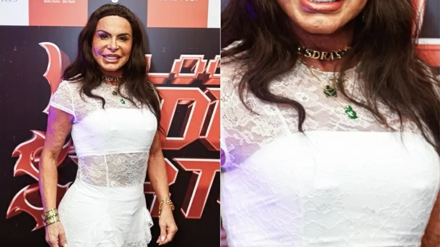 A cantora Gretchen usou uma gargantilha com o nome do marido durante o bloco Modo Surto, comandado por Luísa Sonza, neste sábado (8), em São Paulo. O acessório fez parte do figurino escolhido para a apresentação no Carnaval 2026.