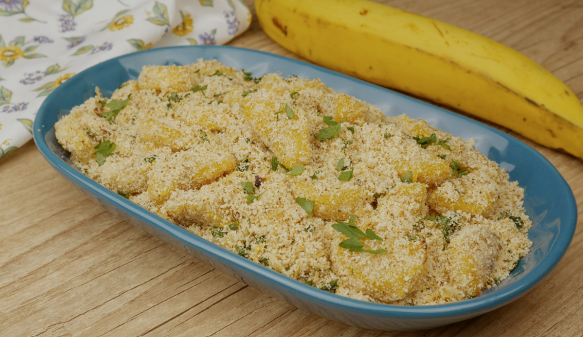 Além de prática, a farofa de banana combina com carne, peixe ou feijão tropeiro. O sabor é equilibrado e conquista quem experimenta.