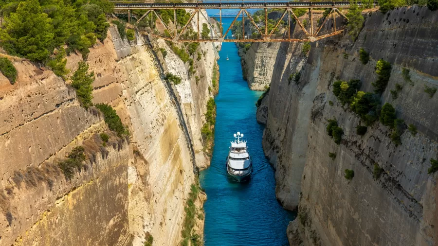 O Canal de Corinto, na Grécia, é um dos exemplos mais antigos de obras públicas com longa duração. Idealizado no século 7º a.C., o projeto só foi concluído em 1893, somando cerca de 2.500 anos entre a concepção inicial e a inauguração. A proposta era ligar o Golfo de Corinto, no Mar Jônico, ao Golfo Sarônico, no Mar Egeu, encurtando rotas marítimas e evitando a navegação ao redor do Peloponeso.